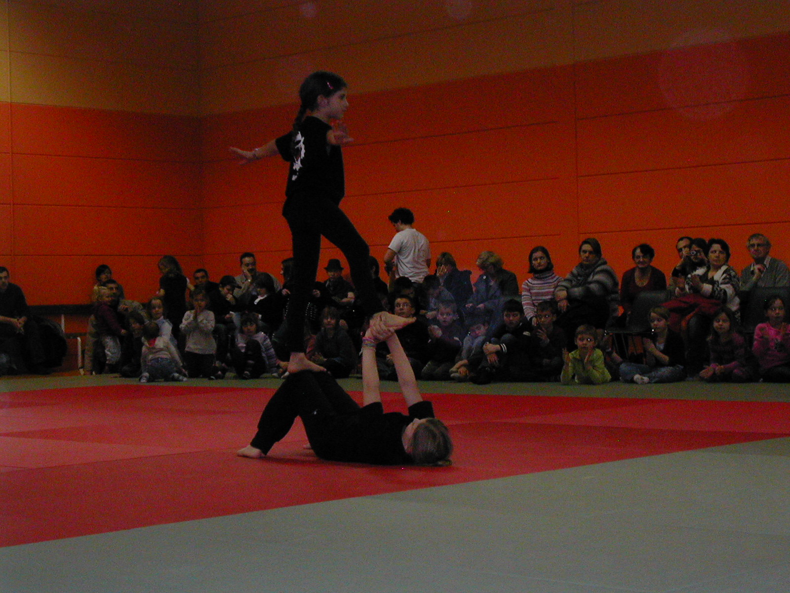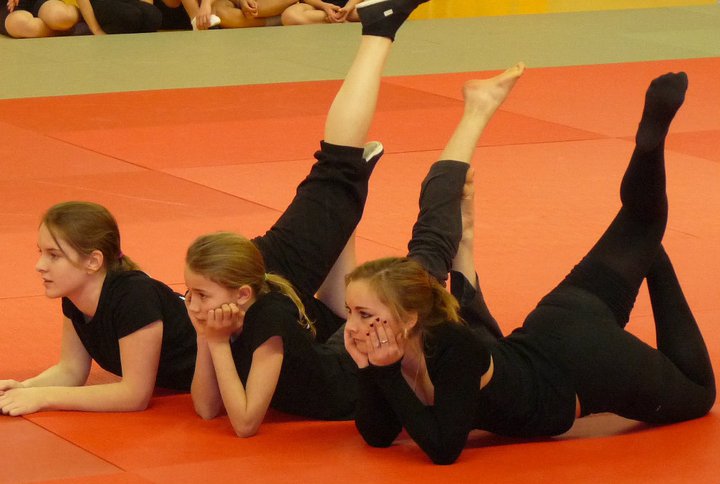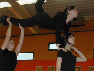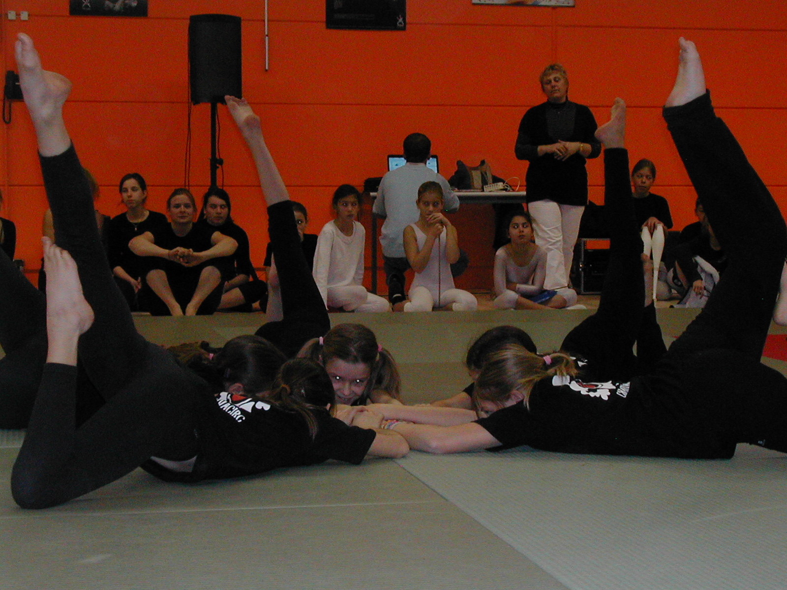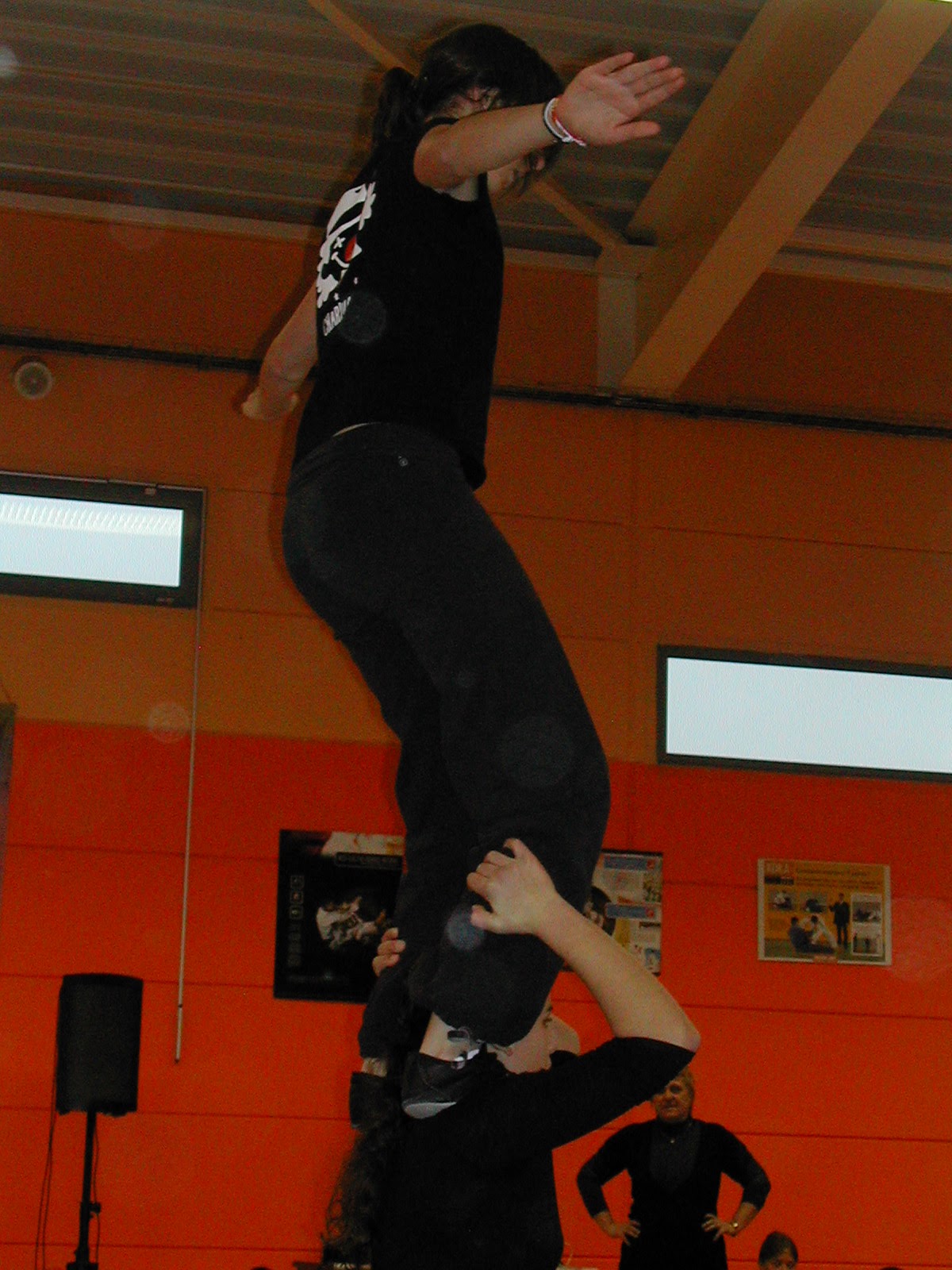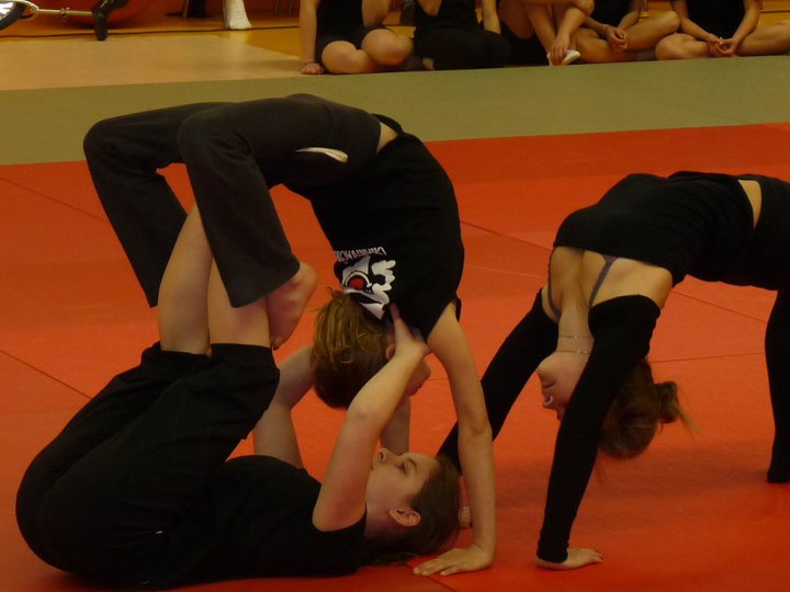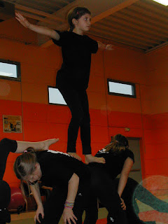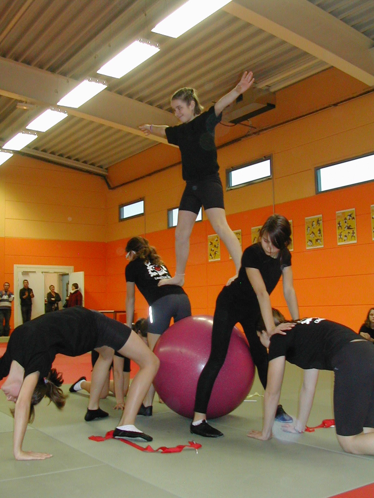 Fin de séance pour les filles de l'atelier du vendredi soir : essais de pyramide....