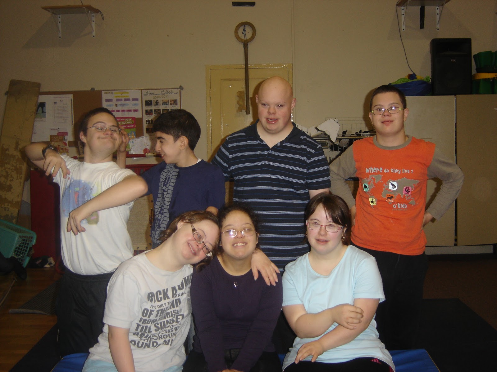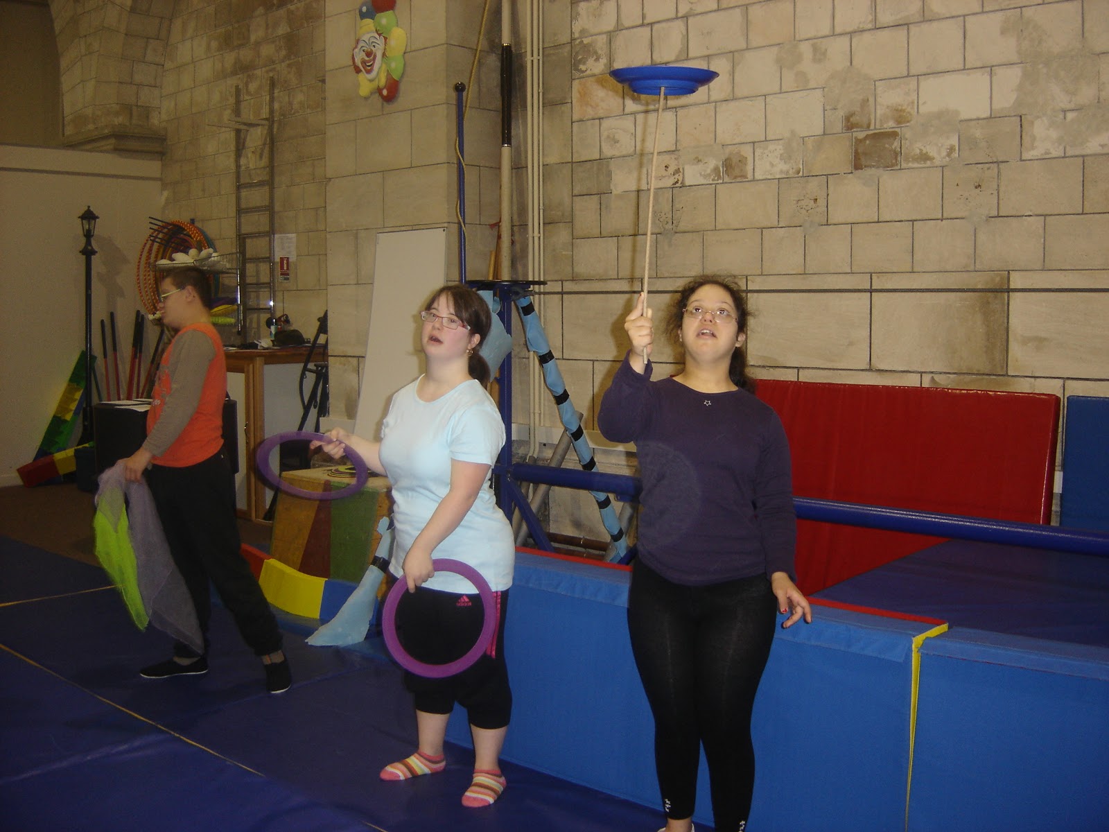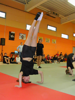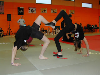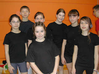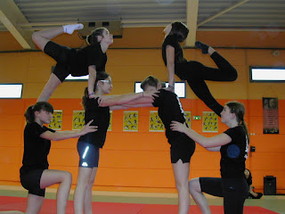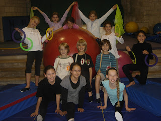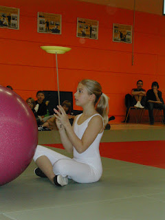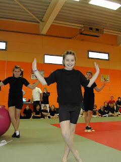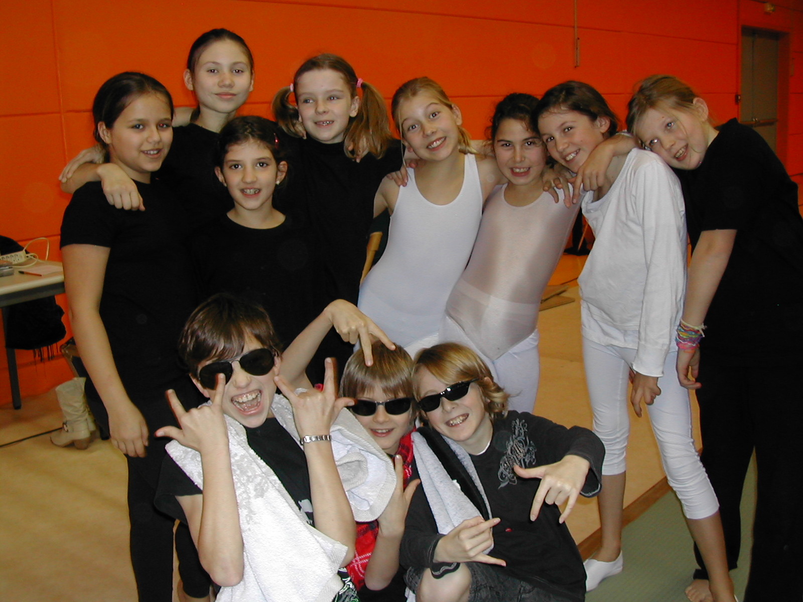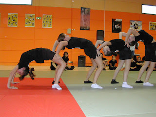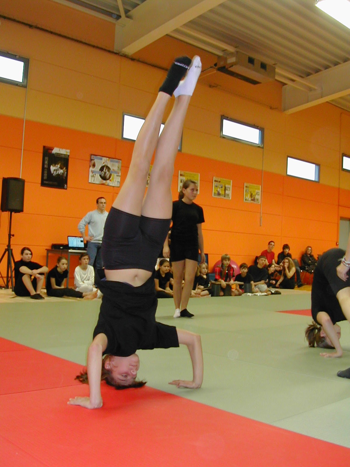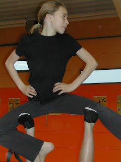 Fin de séance pour les filles de l'atelier du vendredi soir : essais de pyramide....