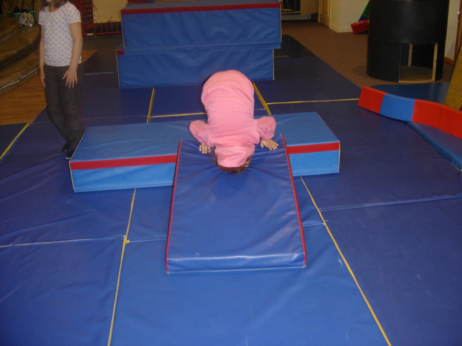 Et les premiers apprentissages pour la roulade avant : le tapis surélevé aide à prendre de la vitesse pour ensuite chercher le mouvement parfait directement au sol.La pédalette...ça parait simple... et pourtant, l'équilibre est bien difficile à trouver sur ce drôle de véhicule ! Avez-vous déjà essayé ?