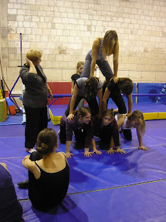 Fin de séance pour les filles de l'atelier du vendredi soir : essais de pyramide....