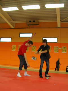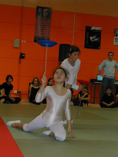 A l'issue de la représentation, Carole a ouvert les malles de Charivacirc et les petits judokas, sous la conduite de nos circassiens, ont découvert les foulards, le jonglage, les assiettes...
